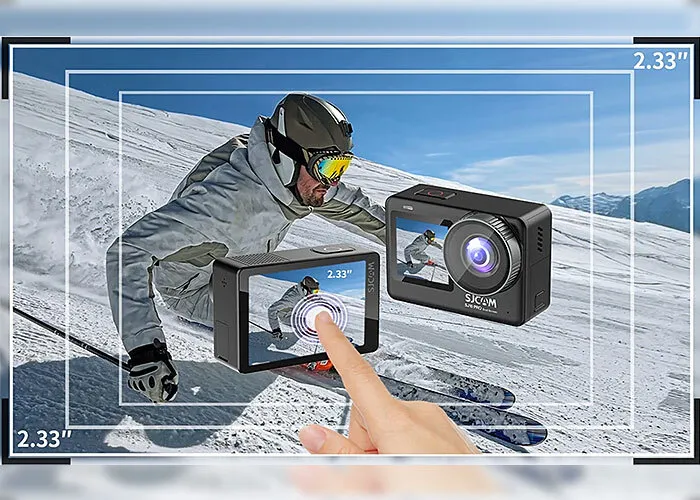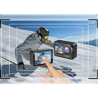2.33" Large Touch Display screen to easily change settings, view videos and take pictures in detail, which makes it more convenient to operate. Plus it has a 1.3" front-facing screen lets you see yourself in action, perfect for vlogging, live streaming, or dynamic filmmaking. Simply press the power/shutter button twice to switch between the front and rear screen. It also Features 2 Aspherical Lenses and 7-Layer Glass Lenses to effectively reduce glare and distortion.