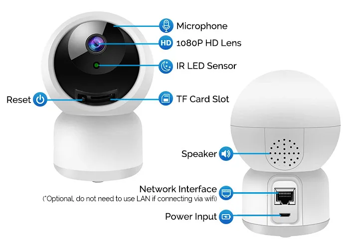WiFi IP Security Camera with smart auto tracking, you can track moving objects or intruders automatically to record video. An alert will be sent to your smartphone, allowing you to remotely access the surveillance camera and check the recording.