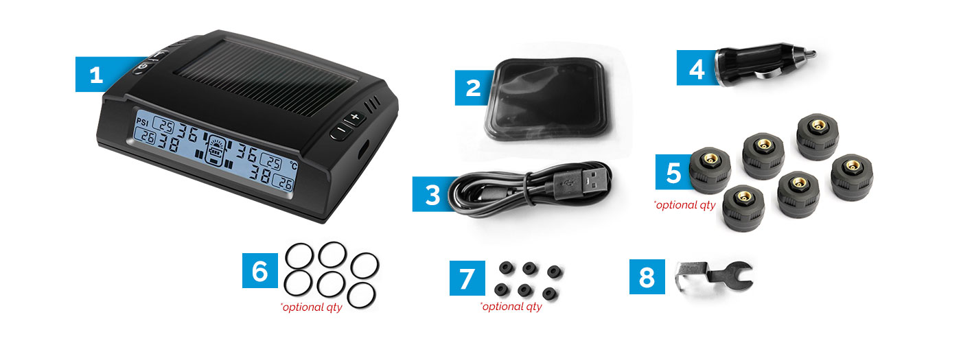 • Provides real-time pressure and temperature for each tyre, which prevents dangerous blowouts, improves fuel efficiency, extends tyre life through even wear. Monitor your tyre pressure accurately from 0 to 99 PSI and temperature data within ±1.5 PSI or ±3°F accuracy.