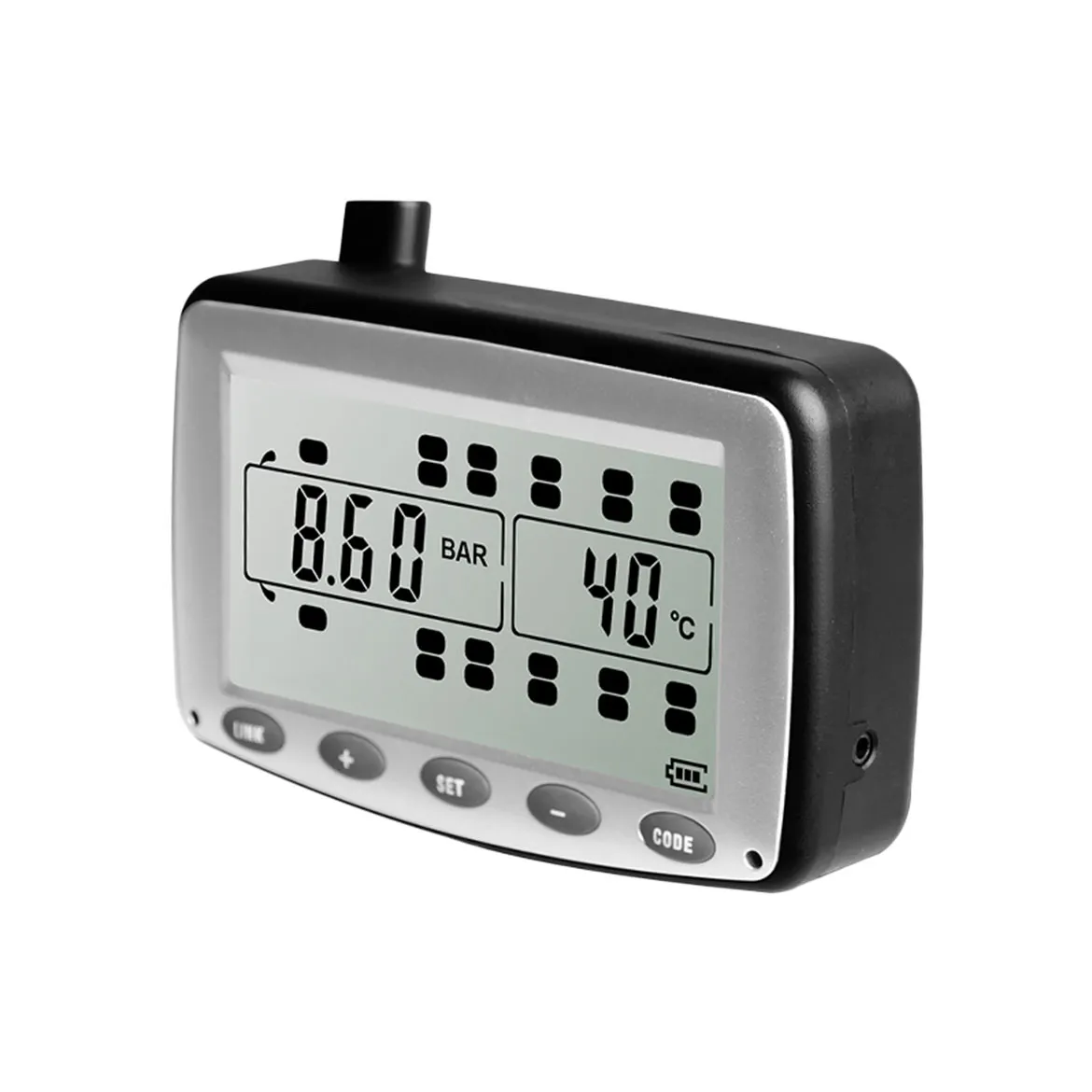 Truck TPMS Tyre Pressure Monitor provides real-time pressure and temperature monitoring for up to 22 tyres, helping prevent blowouts and extend tyre life on heavy-duty vehicles. Designed for trucks and trailers, it features a large LCD, smart safety alarms, and easy setup for reliable road safety.