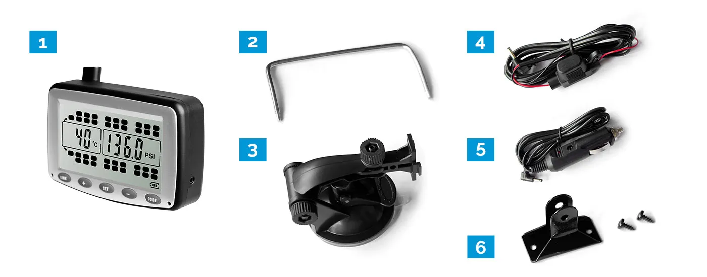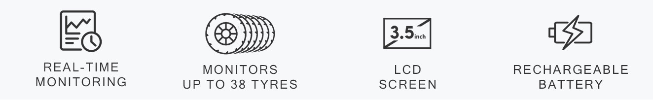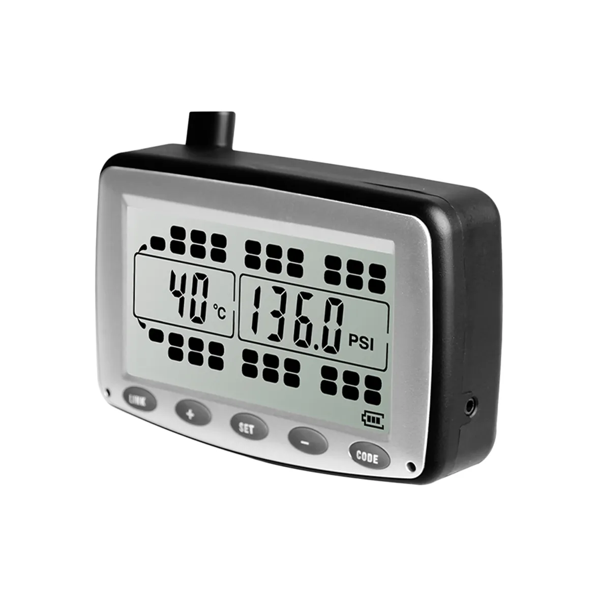 • Provides real-time pressure and temperature for each tyre, which prevents dangerous blowouts, improves fuel efficiency, extends tyre life through even wear. Monitor your tyre pressure accurately from 0 to 189 PSI and temperature data within ±1.5 PSI or ±3°F accuracy.