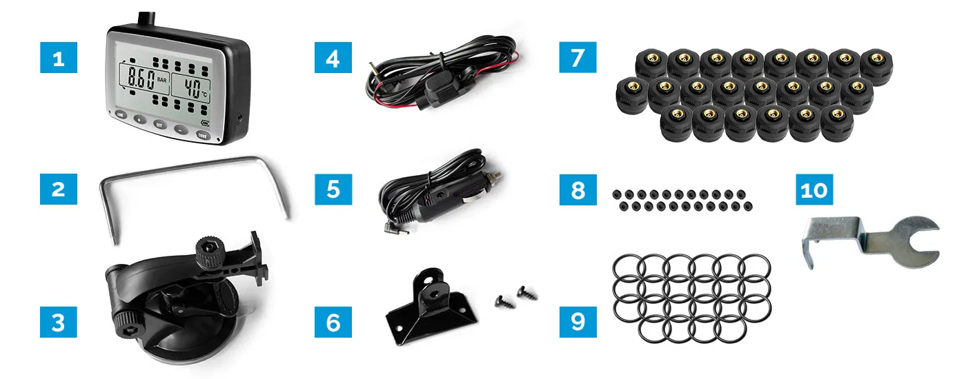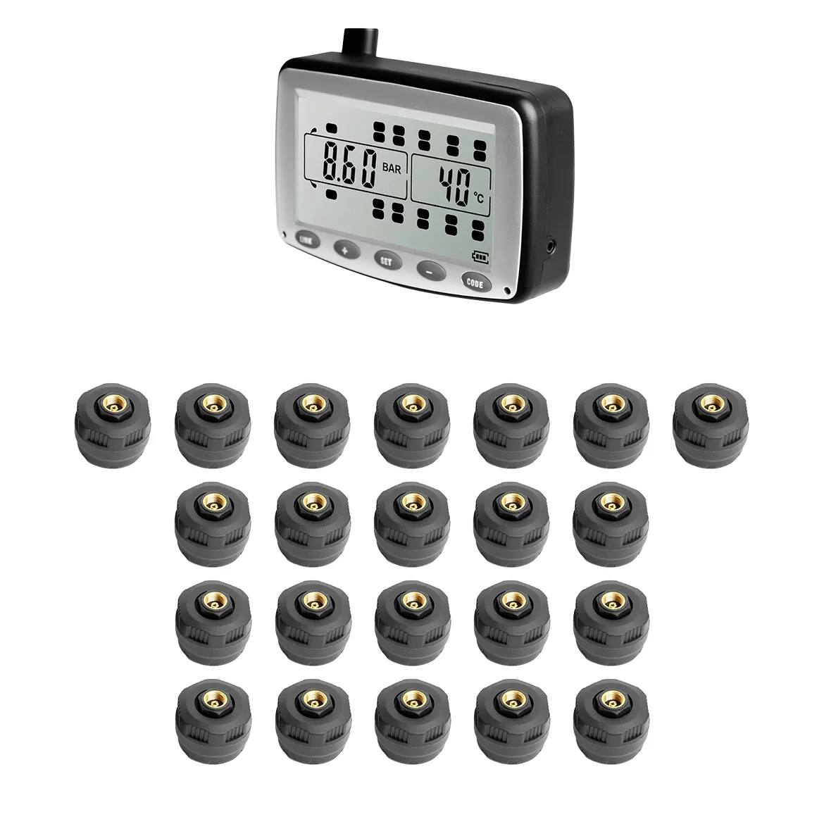 • Monitors up to 22 tyres