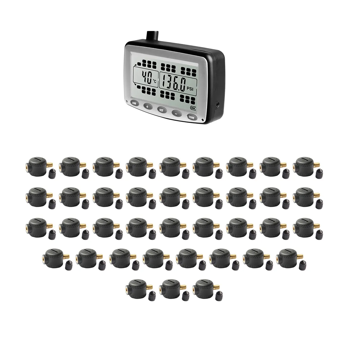 The Truck TPMS with Low-Pressure Flow-Thru Sensors (0–87 PSI) delivers reliable real-time tyre pressure and temperature monitoring for trucks and commercial vehicles. Supporting up to 38 tyres, it features easy flow-thru sensors, a clear 3.5" LCD display with alerts, and advanced safety alarms to help prevent blowouts, improve fuel efficiency, and extend tyre life. Designed for convenience, it includes simple programming, trailer linking, and a built-in rechargeable battery for dependable daily operation.