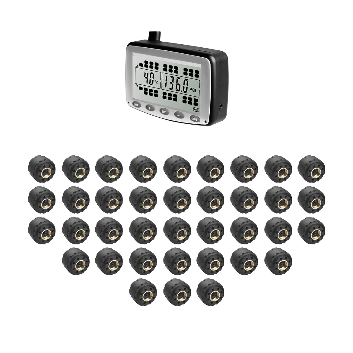 Truck TPMS Tyre Pressure Monitoring System with Low-Pressure External Sensors (0–87 PSI) provides real-time tyre pressure and temperature monitoring to improve safety, fuel efficiency, and tyre life. Featuring a 3.5-inch LCD display, support for up to 38 tyres, five alarm modes, and easy sensor setup, it delivers reliable performance for trucks, trailers, and multi-vehicle applications.