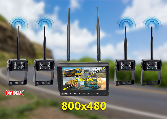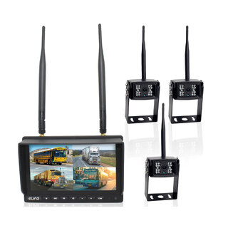 Our Wireless Monitor and Camera kit is intended for a long-range signal monitor and camera communications. It boasts approximately 30 to 200 metres with no interference. You get a 200-metre range when there is no barrier. Seamless connection in multi-angles, cameras perfectly partnered with our bestselling 7-inch Quad screen monitor to result in a satisfactory output. What makes our product worth spending for is its camera with a 120-degree view angle and 2.4Ghhz transmission.