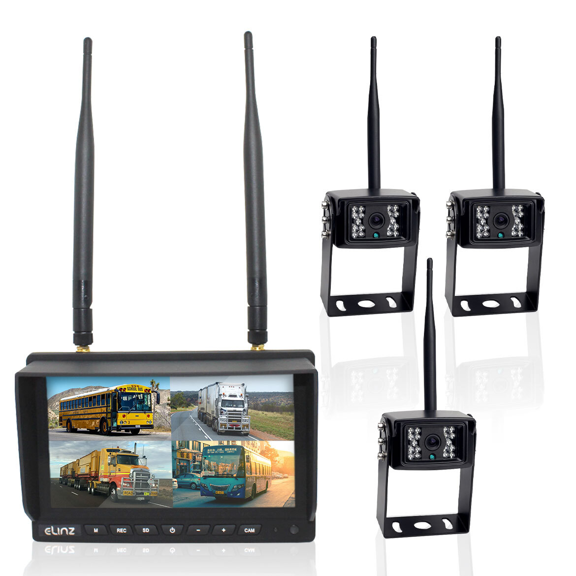 Digital Wireless 7" Quad Monitor Splitscreen CMOS Reversing Camera DVR 12V 24V 2.4GHz