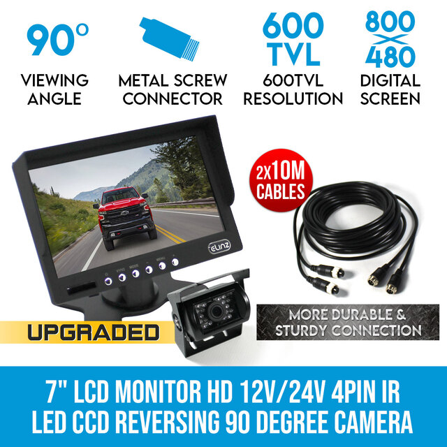 Elinz 7" Monitor HD 12V 24V CCD 4PIN Reversing Camera Truck Caravan 3 AV inputs 600TVL